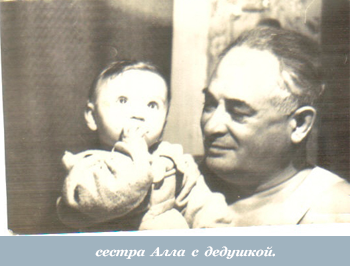 - В 10 лет у меня появилась сестра, Алла. Это меня повергло страшно, когда ее принесли. Я даже убежал из дома… конечно меня нашли, но это был страшный удар для меня… я привык, что мама – это только моя мама! Мама за мной ходила и ухаживала; отец очень раздражался, что она меня баловала. Он очень хотел девочку, и она появилась. Теперь мне надо было привыкать к тому, что я не один. Но, в принципе, ничего не изменилось, просто у меня появилось больше самостоятельного времени. Зимой бегал на каток... Бегал с Ленькой, Андрюхой и еще с несколькими ребятами по городу… Ох, какие шутки мы вытворяли в метро… нам конечно за это попадало… Мама один раз меня с подножки трамвая сняла… мне влетело по полной программе… Дураками были! Теперь мурашки по коже идут, когда вспоминаешь, что мы вытворяли!